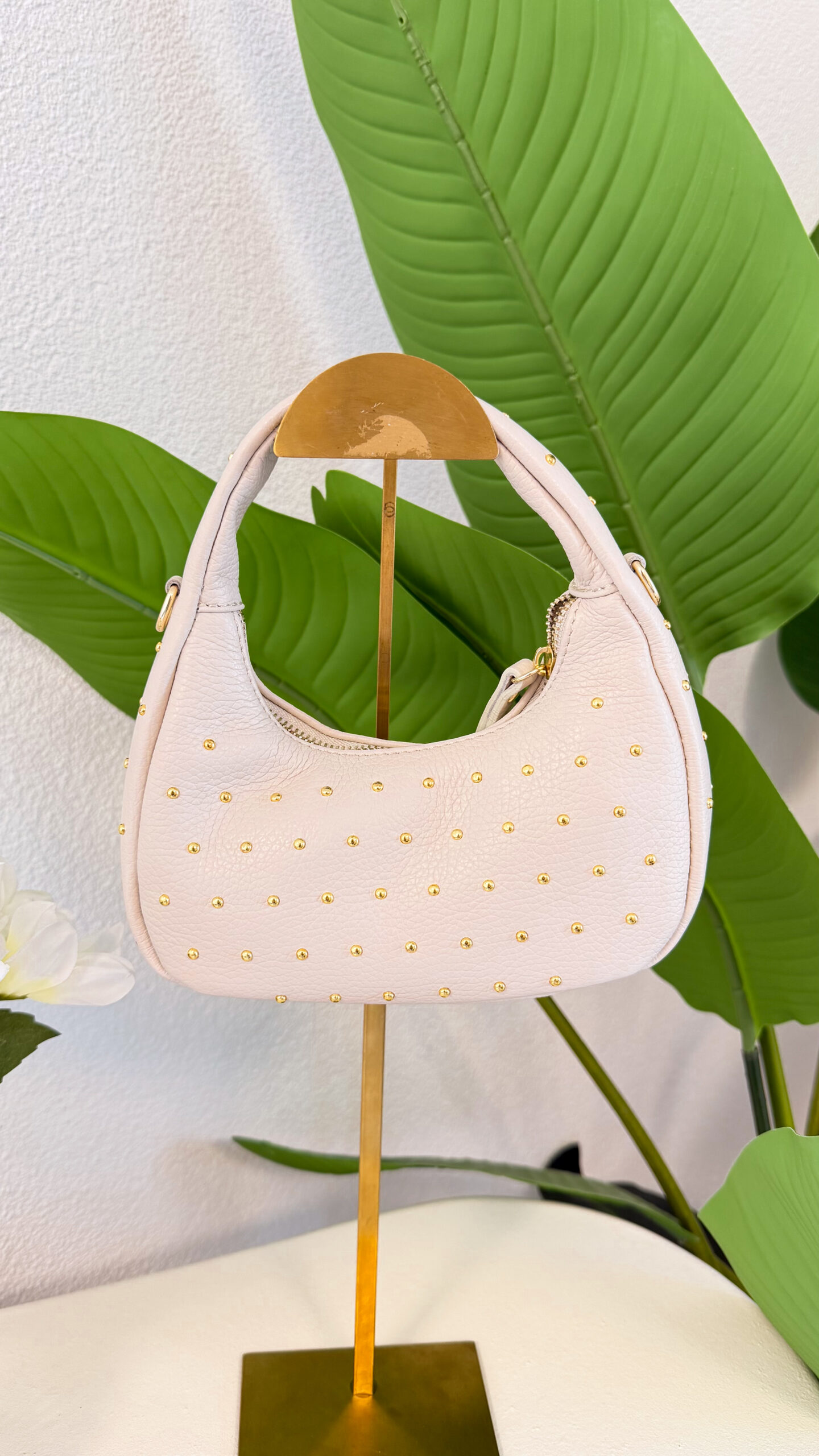 Super leuke studs tas van echt leer, zit ook een lange bagstrap bij.
