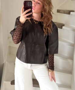 Super leuke blouse met kant, een leuke punt waardoor je er ook een trui over kan dragen.